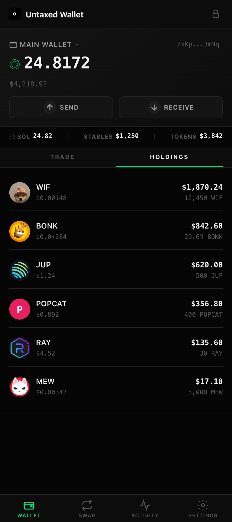 Get Untaxed Wallet and trade seamlessly on Axiom, Padre Terminal, pump.fun, gmgn.ai, Photon, and DexScreener